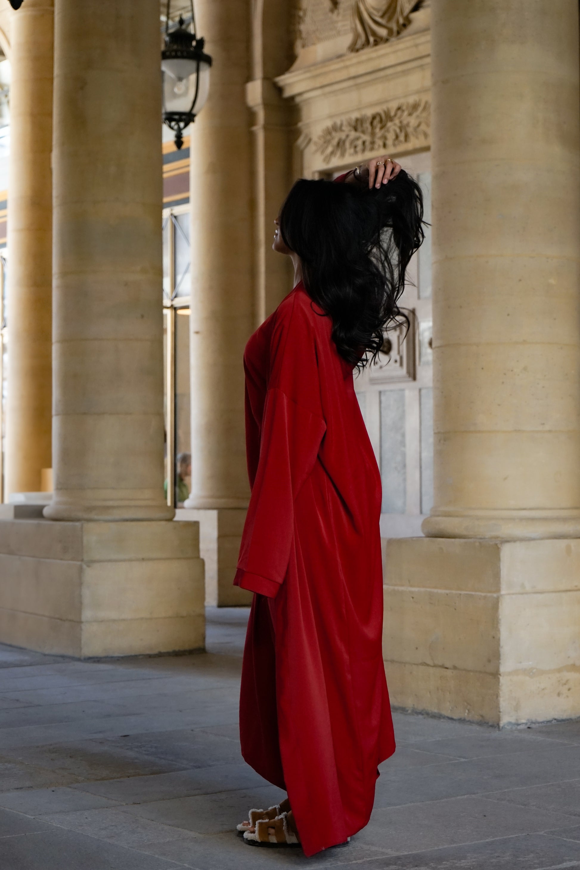 L'ensemble Abaya Sahar incarne la grâce et le raffinement à travers une coupe fluide et un tissu de crêpe d'une légèreté envoûtante.Composé d'une robe à manches longues et d'un kimono assorti, cet ensemble offre une silhouette élégante et majestueuse, idéale pour toutes les occasions.